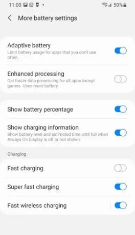- 第 5 步:打开快速充电(或快速电缆充电)。如果您使用无线充电器,您可能还会看到快速无线充电,您可以启用该功能。