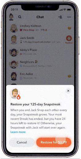 如果您失去了连续记录,Snapchat 提供了恢复连续记录的选项,但需要记住一些条件。首先,该功能并非无限制,过度使用可能会产生费用。其次,有时间限制;连胜消失后,您必须立即采取行动。