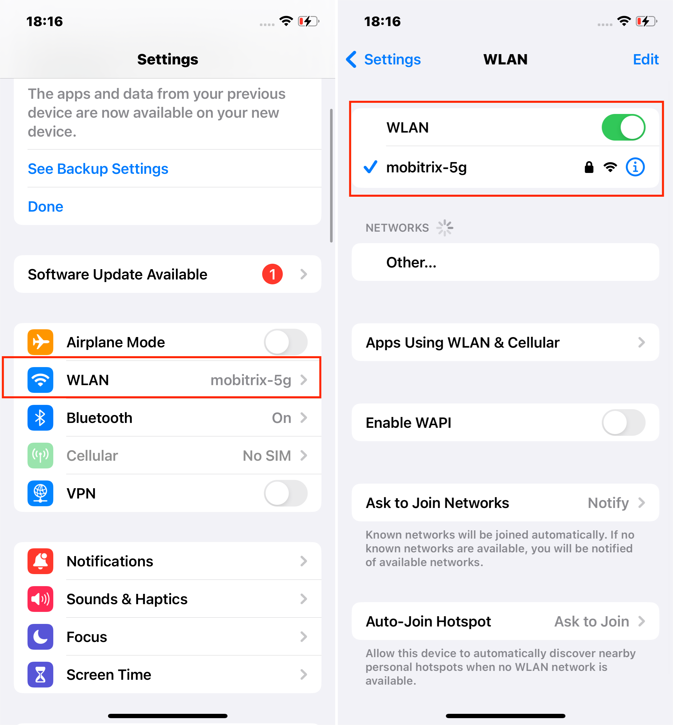 - 无线网络连接:确保您的 iPhone 已连接到 Wi-Fi 网络。如果已连接,请尝试关闭并重新打开 Wi-Fi。或者,尝试连接到其他 Wi-Fi 网络(如果可用)。