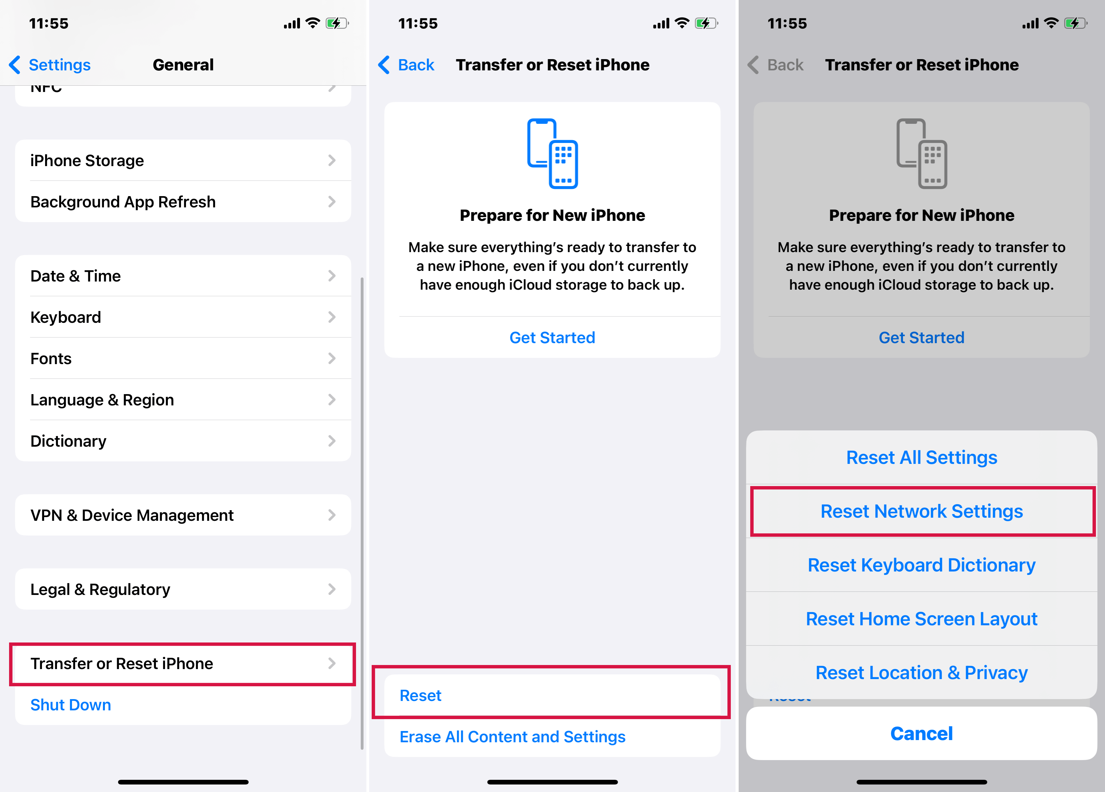 下载和准备 iOS 更新的过程在很大程度上依赖于稳定的网络连接。如果您的网络设置存在潜在问题,例如 Wi-Fi 设置损坏或网络冲突,则可能会阻碍更新过程。作为补充解决方案,重置网络设置会清除这些配置。