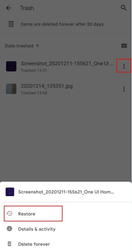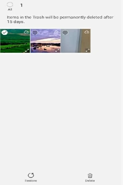 记住:如果超过 15 天,垃圾箱部分中的照片将被永久删除。如果您想在 15 天后恢复三星 Galaxy 上已删除的照片,请查看此部分:从手机内部内存恢复三星 Galaxy 上已删除的照片。