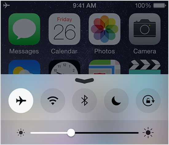 为此,您只需从屏幕底部边缘滑动即可进入控制中心。然后单击飞行模式图标将其打开。之后,将您的设备连接到充电器,看看您的iPhone是否可以充电。