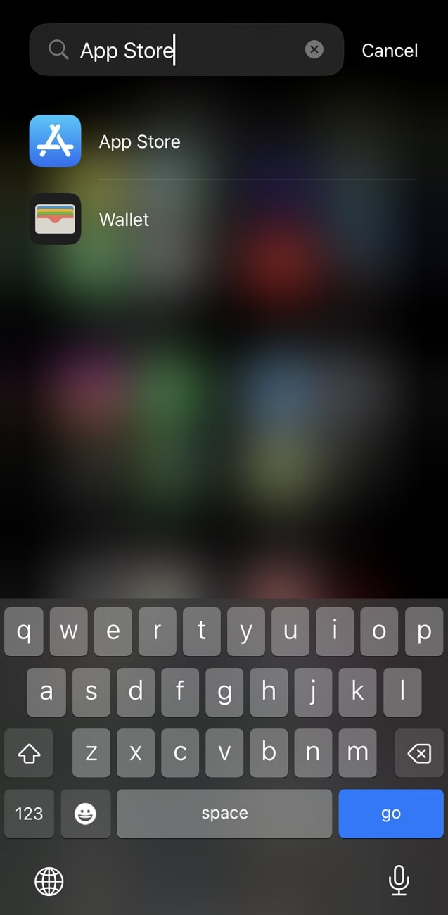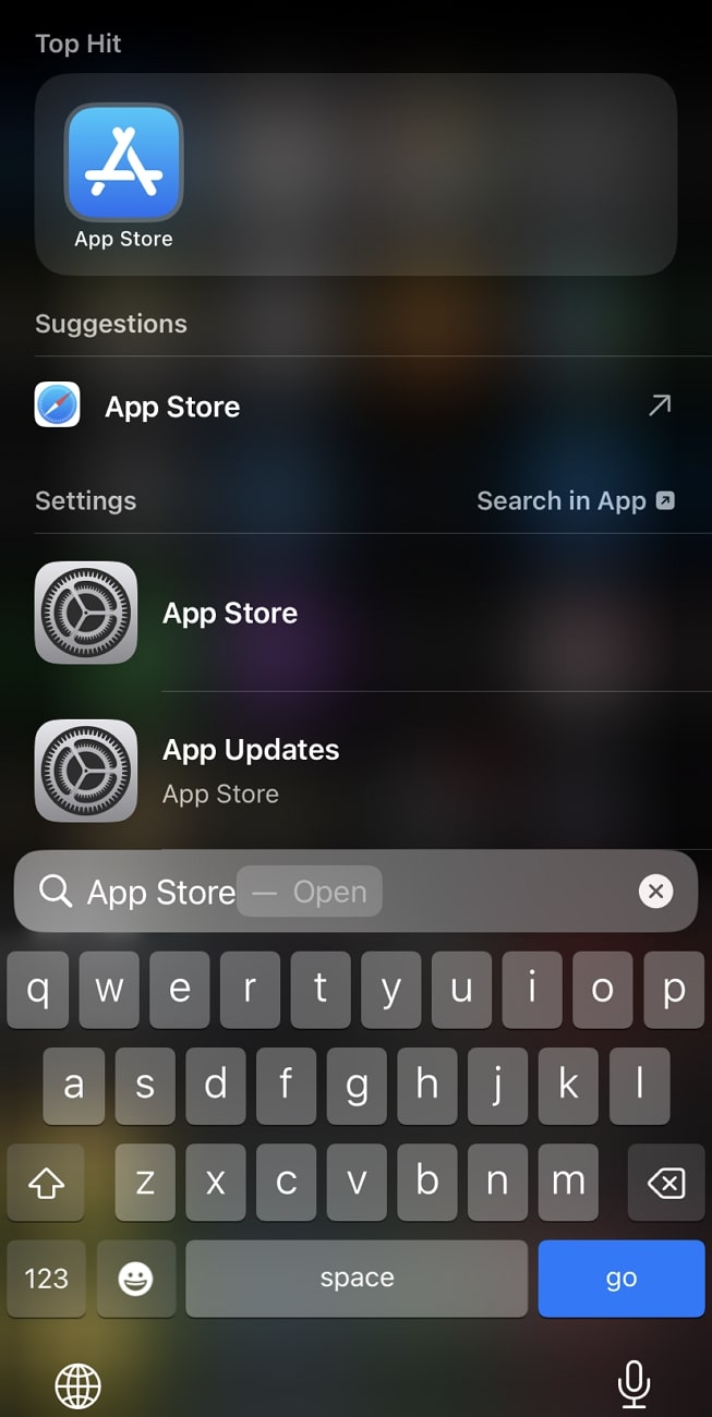 指示:从 iPhone 主页显示的中间,只需向下滑动屏幕即可启动 Spotlight 搜索功能。在那里,输入“App Store”名称,此功能将自动为您找到它并使其完全可访问。
