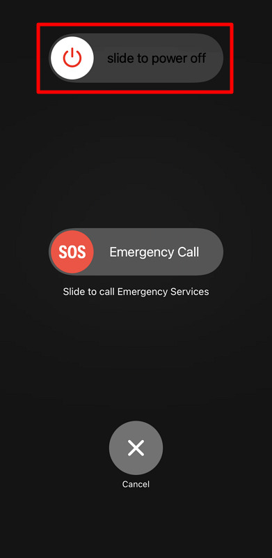 步骤1按 iPhone 的“侧面”按钮和其中一个“音量”按钮启动重新启动过程。按住按钮一段时间,直到屏幕上出现动画滑块按钮。接下来,只需向左拖动滑块即可关闭 iPhone。