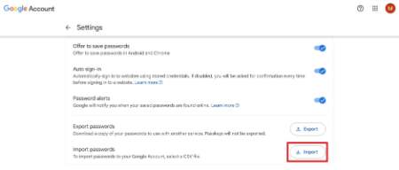步骤4随后,按“导入密码”部分旁边的“导入”按钮,然后选择最近导出的 CSV 文件。