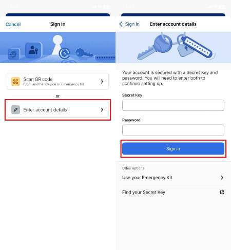步骤4然后,通过点击“输入帐户详细信息”按钮来访问 Android 上相同的“1Password”应用程序帐户,您将看到保存的密码详细信息。