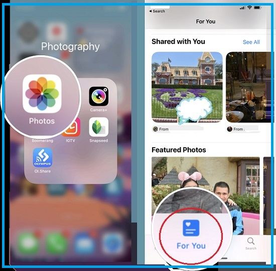 当有人通过 iMessage 向您发送图片时,该图片会自动显示在“照片”应用程序的“为您”选项卡中。从这一部分,您可以直接将其保存到您的“照片集”中。