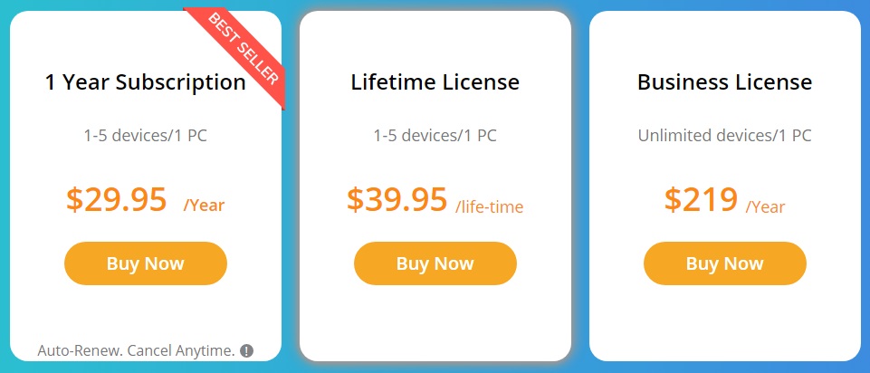 Syncios WhatsApp传输工具的免费版和付费版本都可用。免费版本有一些限制,您将无法访问所有高级功能。您只能使用免费版本备份WhatsApp数据,如果要转移,则需要为其付费。
