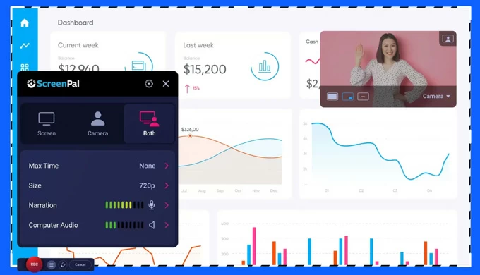 有了它,您可以选择显示屏的一部分、单个窗口,或录制全屏,以及来自系统或应用程序的声音,或来自麦克风的音频,或两者兼而有之;您甚至可以启用网络摄像头在录制中创建图片到图片。完成视频录制后,您可以使用内置编辑器编辑截屏视频,并将其导出为 MP4(或其他流行格式,以便其他人轻松查看)。