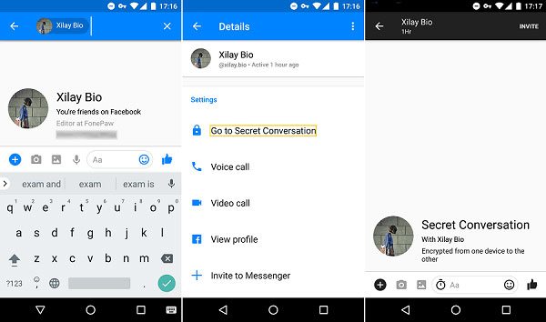 现在您处于秘密对话模式,您和接收者之间的所有对话都将被加密。但是,有些用户可能会说,他们想对现有的消息进行加密,可以吗?是的!您可以使用此功能将对话更改为秘密对话。为了实现这一目标,您可以: