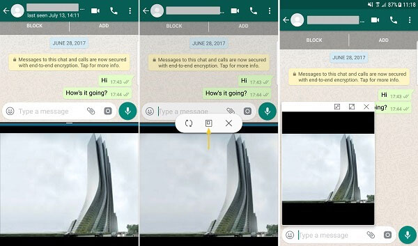 这意味着您可以在手机上使用一个应用程序时启动另一个应用程序。例如,如果您想在观看 YouTube 视频的同时查看 WhatsApp 上的消息,您可以: