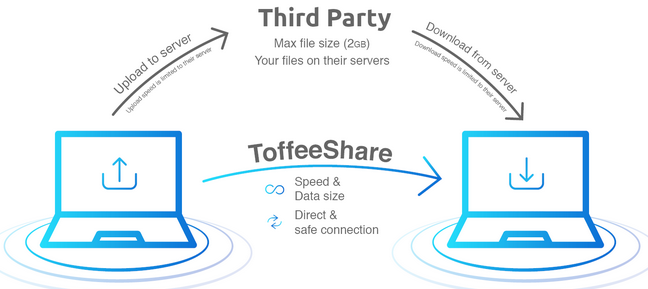- 需要Internet连接并将文件上传到云 - 无直接点对点转移。