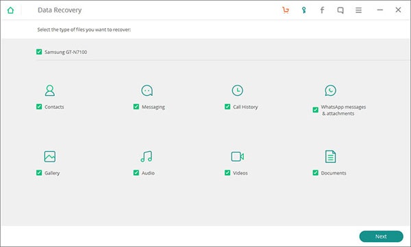 – 恢复超过7种类型的Android文件,包括联系人、消息、通话记录、媒体文件、文档等。