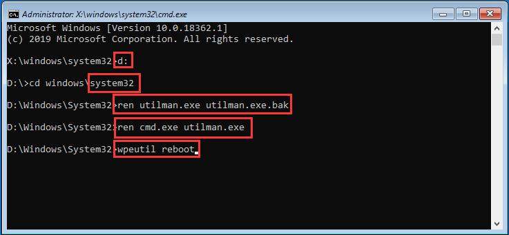 - 现在,使用新密码访问笔记本电脑,并使用以下方式还原utilman.exe和cmd.exe