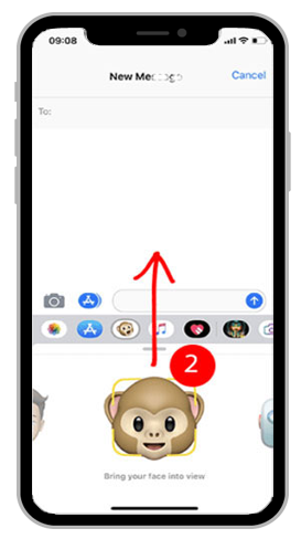 步骤2。在酒吧里消息应用,只需点击或选择Animoji按钮用猴子的脸指示。