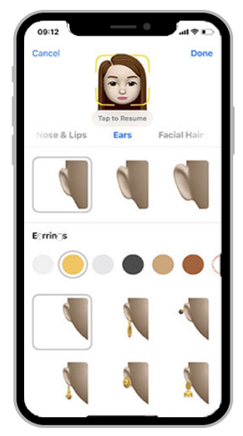 耳朵的选项仅限于三种选择 - 中小型,中和大。您有可能添加一些耳朵样式,因为在iOS 12中最多可用于创建备忘录。而且,还有不同的耳环颜色和阴影。