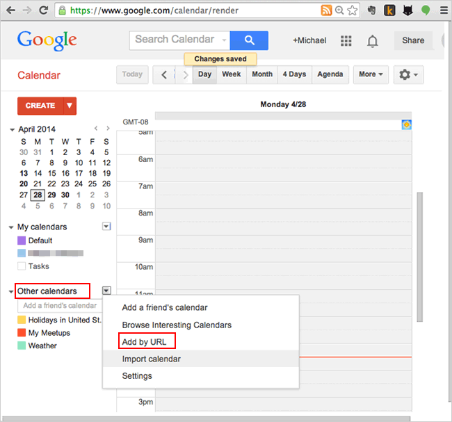 步骤 6。在“其他日历”菜单上,单击向下的箭头,然后选择“通过 URL 添加”。