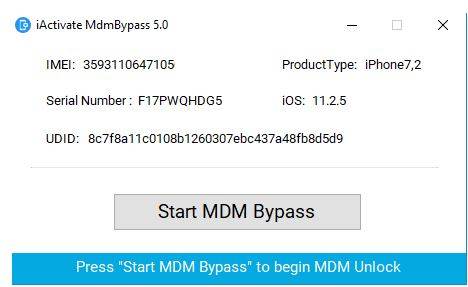 - MDMPatcher Universal将检测您的iPhone并显示诸如型号,iOS版本,IMEI,UUID和序列号之类的详细信息。