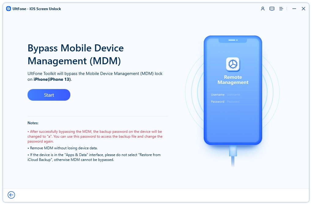 要获得无忧的体验,请使用UltFone iPhone Unlock快速有效地绕过设备上的MDM。