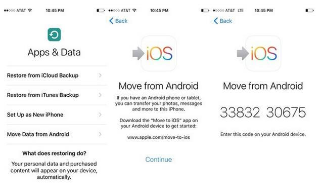 第6步:在 iPhone 上,点击“从 Android 移动”屏幕上的“继续”,然后等待出现十位数代码。