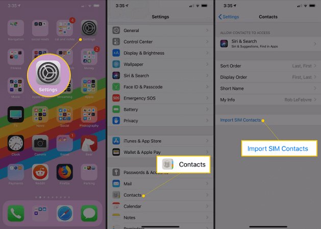 步骤3:转到设置并将 .vcf 文件导入到目标手机上的联系人应用程序。