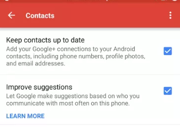 您可以选择取消选中Google+应用中的“保持联系最新”功能,请按照以下步骤:启动Google+应用程序并登录您的帐户。导航到“设置”部分,然后选择您的姓名。然后,点击“联系人”,并验证“保持联系最新”选项是否未选中。