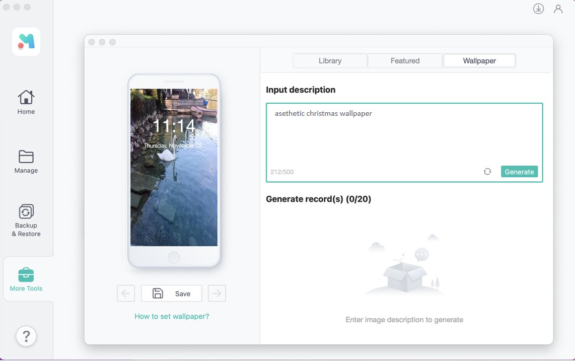 您可以通过特定的应用程序或软件获取人工智能生成的壁纸,这些应用程序或软件使用人工智能根据您的喜好创建或自定义壁纸。 UltFone iOS Data Manager 是一个示例,它提供根据您的描述输入定制的 AI 生成壁纸。
