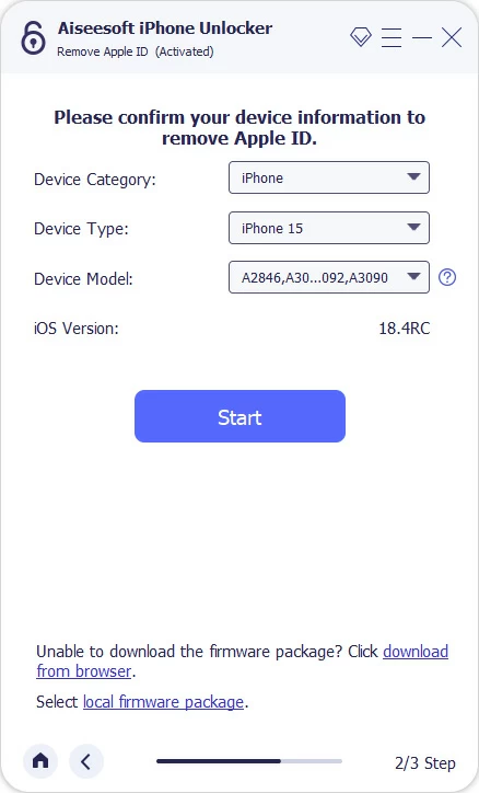 现在,检查您的设备信息并单击开始按钮。该软件将为您的 iPhone 和 iPad 下载 iOS 固件,然后启动重置过程。您需要等待几分钟后下载完成。