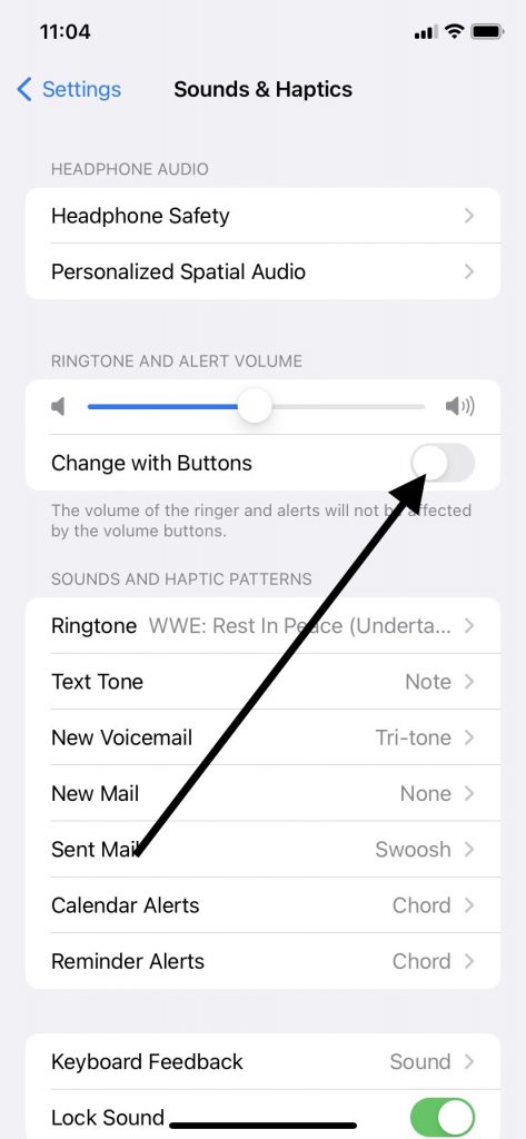 如果 iPhone 音量按钮不起作用,您可以检查一项附加设置。您可以打开您的设置应用程序并转到声音和触觉。您看到的一个选项应该是用按钮改变。