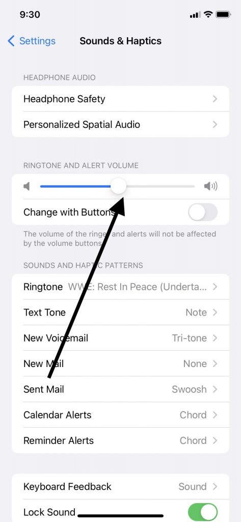 您可能尝试的下一件事是调整铃声音量。您可以通过访问手机的控制中心来执行此操作设置。打声音和触觉,然后查找下面的幻灯片铃声和警报音量。
