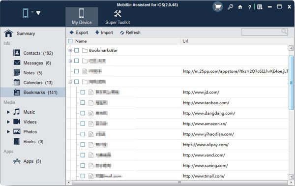 问:我通常在iPhone上使用Safari浏览各种网站,每次看到一些有趣的帖子或文章时,我都会将此页面的书签添加到浏览器中。有时我会在浏览器上看小说,我会标记我读过的最后一页。这样我下次只要打开书签列表,点击我制作的书签就可以直接访问该小说了。现在我需要将书签传输到计算机作为备份。您能为我提供一些有用且简单的方法来在计算机上管理 iPhone Safari 书签吗?