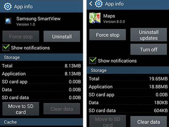 – 在应用程序信息页面,您只需点击移至SD卡开始移动过程。如果该选项呈灰色,则表示该应用程序不可删除。
