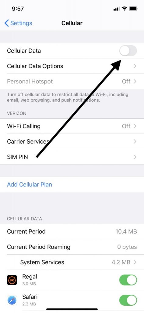 如果您无法访问Wi-Fi网络,但是您仍然需要激活和使用iMessage,那么您必须使用蜂窝数据。如果您有服务提供商的数据计划,那么您应该能够做到这一点。你需要去设置在手机上,然后点击细胞。它在哪里说蜂窝数据,将开关切换到ON位置。当它在右侧并变绿色时,您会知道您已经正确完成了。
