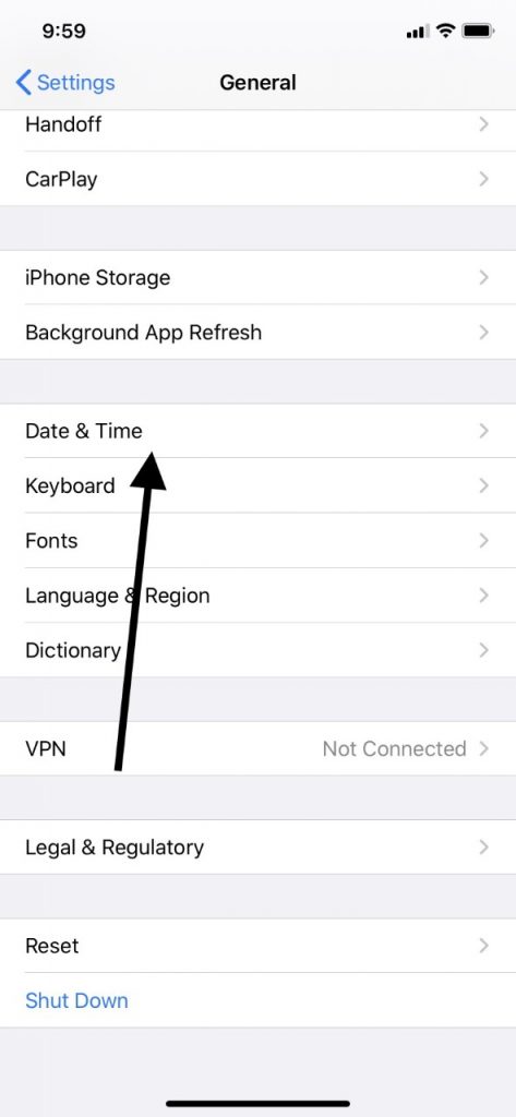 接下来,您应该研究是否正确设置了iPhone的日期和时间。在您设置设备上正确的日期和时间之前,有一些特定的功能并不总是会正常工作。去设置, 然后一般的。去日期和时间并为您的时区和正确的日期设置它,如果您看到的是不准确的。