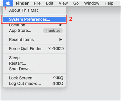 步骤1。在 Mac 桌面上,点击苹果左上角的图标,然后选择系统偏好设置。