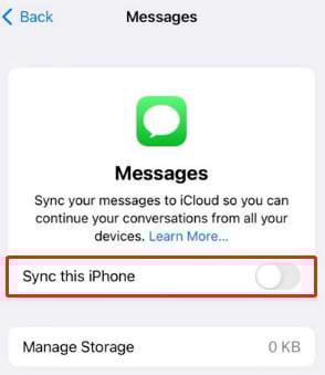 - 在列表中找到“消息”并关闭“同步此 iPhone”。稍等片刻,然后将其重新打开以重新启用与 iCloud 的同步。