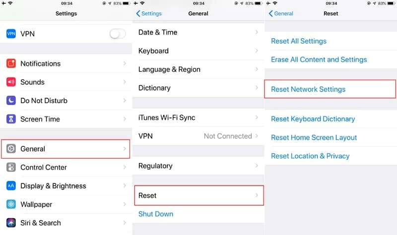 您也许可以在下面找到此选项设置>一般的>重置>重置网络设置,输入您的密码,然后点击重置网络设置出现提示时进行确认。等待几分钟,让您的 iPhone 重新启动。