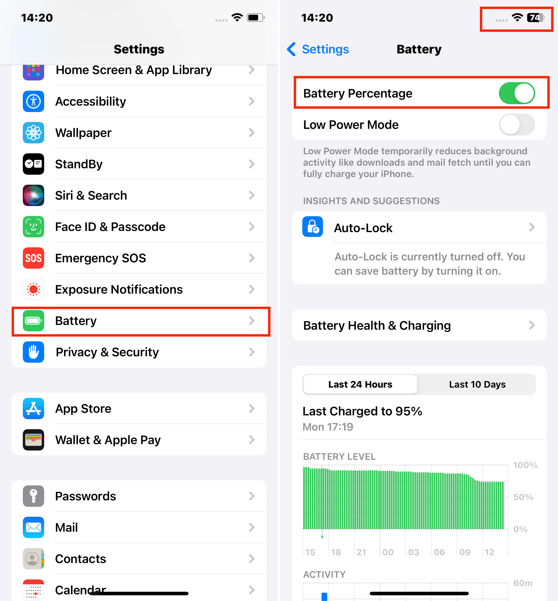- 开启电池电量百分比。
