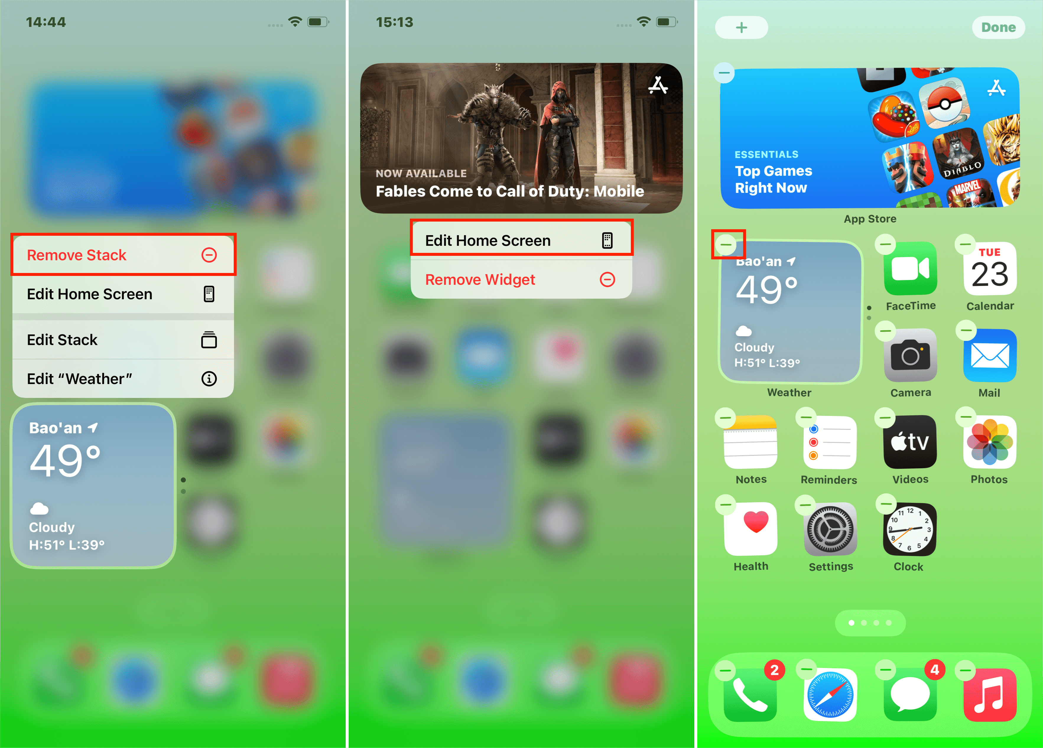 - 点击并按住您不再使用的小部件。然后选择选项删除小部件。