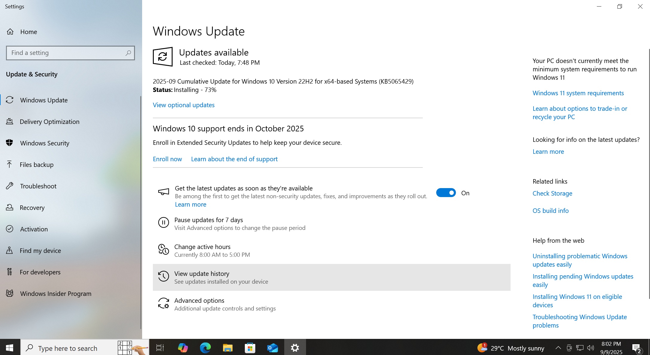 在我们讨论注册过程之前,请注意 Windows 10 KB5065429 是强制性安全更新。它将出现在“2025 年 9 月适用于基于 x64 的系统的 Windows 10 版本 22H2 累积更新 (KB5065429)“设置”应用程序中的标签。