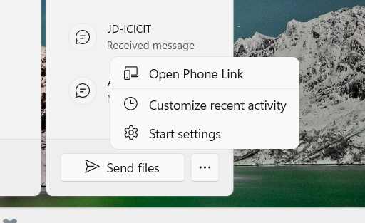 您将能够直接在“开始”菜单上查看移动设备上的消息和照片。事实上,您还可以使用新的“立即发送”按钮通过 Wi-Fi 将文件从桌面传输到手机。