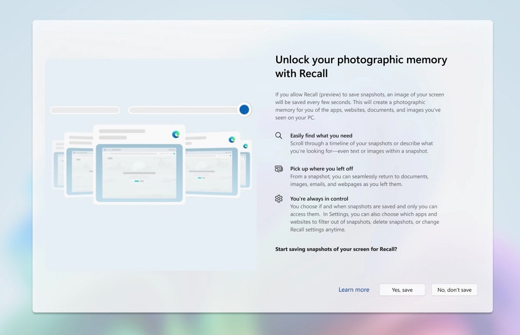 KB5058411 是强制性安全更新,因此无论您是否喜欢,它都应该自动下载并安装。我自己尝试了更新,我们注意到它最终打开了“Recall”,这是一项基于人工智能的功能,每隔几秒钟捕获一次屏幕快照,以便您可以及时返回并恢复您的活动。