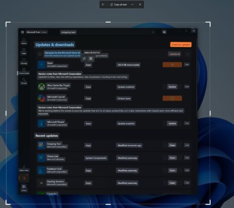 此外,微软还将 OCR 功能引入到 Windows 11 的覆盖层中,当您使用屏幕截图快捷方式 (Win + Shift + S) 或新的 OCR 快捷方式 (Win + Shift T+) 时,该覆盖层就会出现。