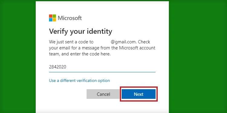 - 现在,系统会要求您进行身份验证。您有两个选择可供选择。您可以使用之前与您的帐户关联的身份验证器应用程序创建的代码,也可以单击“使用不同的验证选项”,然后选择电话号码或电子邮件地址。系统将根据您选择的选项发送一个代码。