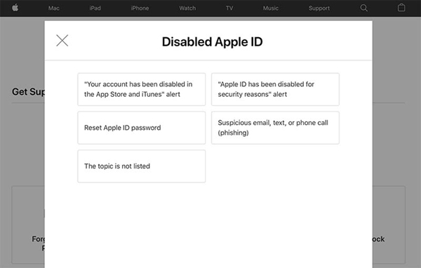 如果尝试上述解决方案无效,您可能需要 Apple 支持。您可以访问 Apple 支持网站并转至 Apple ID 问题部分。在那里,您会注意到“已禁用 Apple ID”问题门户。您可以选择您遇到的问题并与 Apple 代理聊天,询问您的帐户为何在 App Store 和 iTunes 中被禁用。这有望解决该问题。但是,当没有任何方法适合您时,我们建议将此作为最终选择。