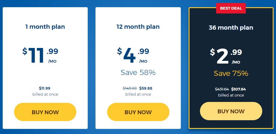 过去,HMA的价格过高,引起了很多人的抱怨。随着时间的推移,该服务修改了定价计划并降低了成本,并提供 HideMyAss VPN 免费下载和 7 天试用期。目前,他们最长的 36 个月订阅计划的成本最便宜。