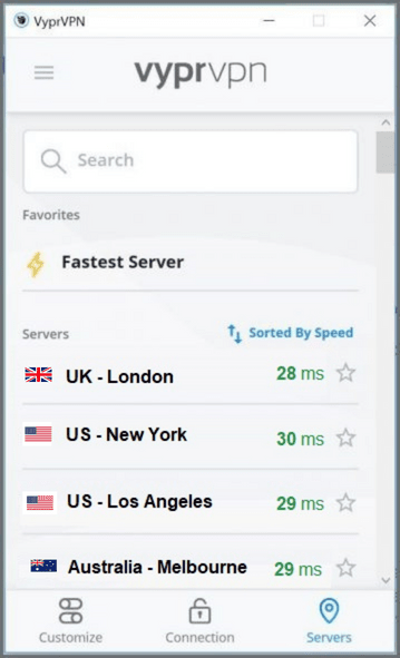 如果您不需要连接到特定位置,VyprVPN 具有快速连接功能。它将测量距离和延迟,自动为您提供最快的可用连接。