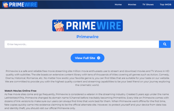 | Primewire | 电影和电视节目 | 720p,1080p | 很多广告和弹出窗口 | 非法的 |