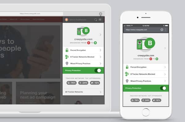 DuckDuckGo 除了标准搜索引擎之外还提供浏览器扩展 - Privacy Essentials Extension。它可以保护 Firefox、Chrome 和 Safari 用户免受网络跟踪。