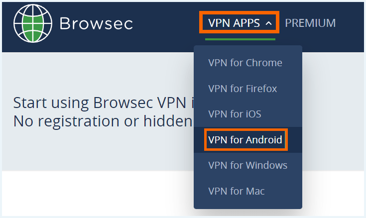 - 选择适用于 Android 的 VPN。